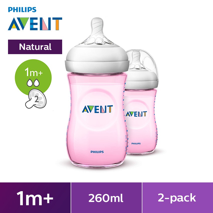 The Philips Avent Natural bottle is available in 4 sizes. Philips Avent Natural baby bottle with the Natural Response nipple lets baby control the pace of the milk like they do when breastfeeding. Wide breast-shaped teat allows for natural latch on.