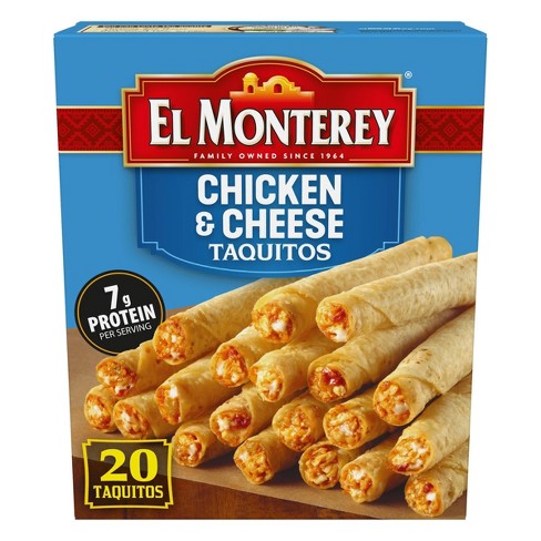 Charisma Madarang Jun 6 2014. I did 350 for. El Montereys Chicken Cheese Flour Taquitos feature chicken Monterey Jack cheese and Mexican spices rolled inside an oven-baked flour tortilla.