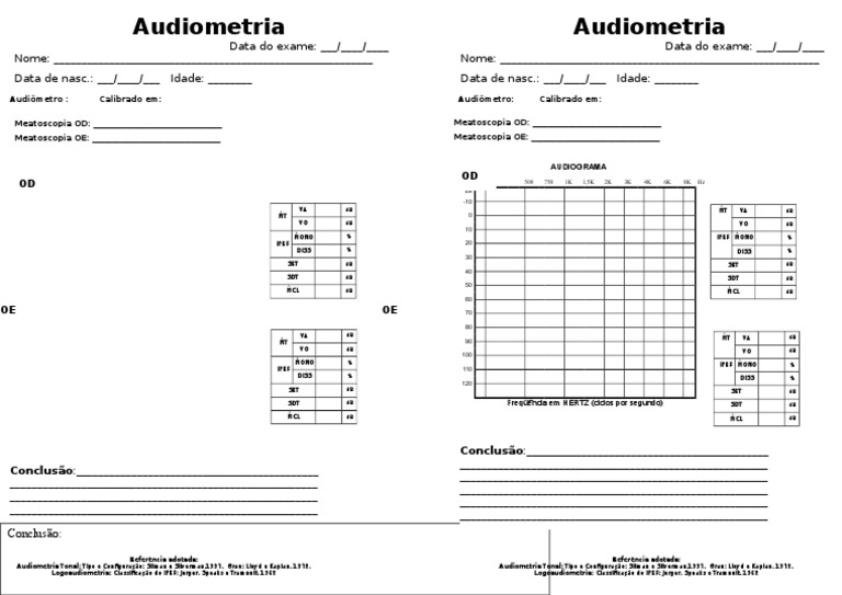Folha De Audiometria Em Branco